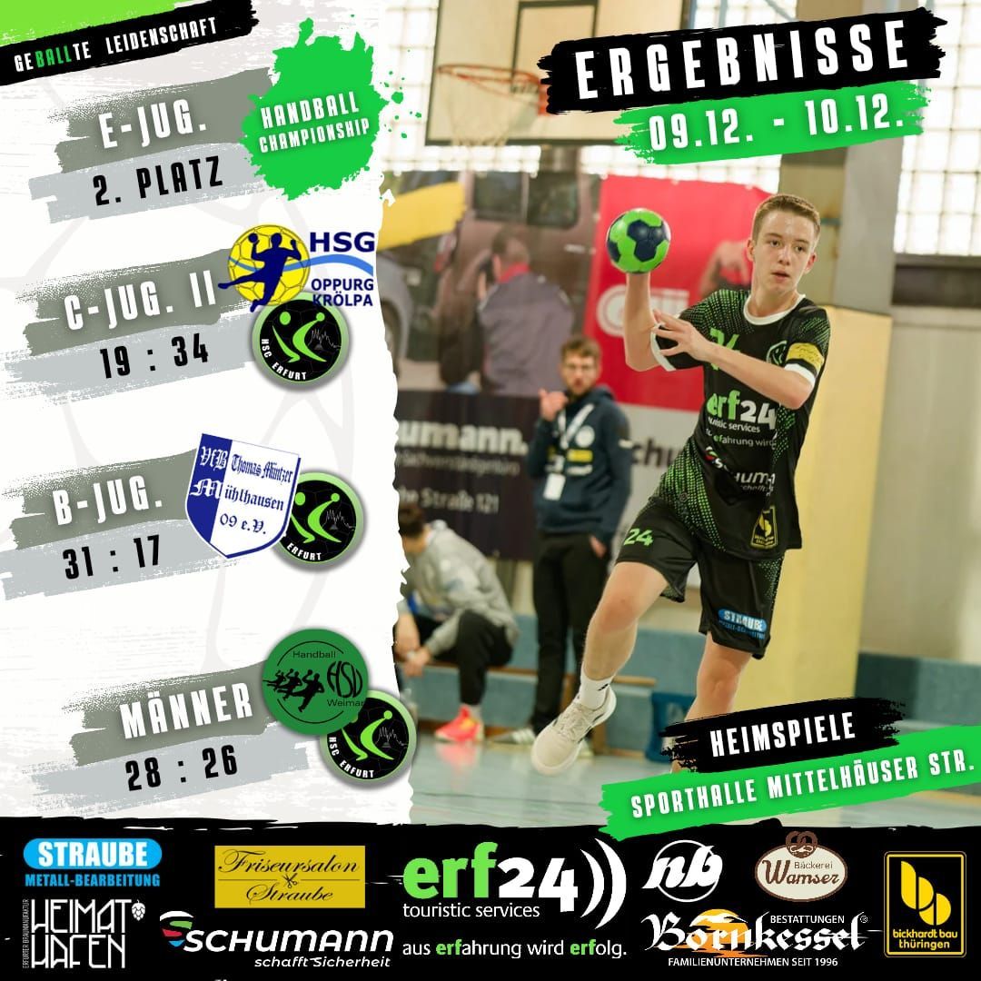 Ein spannendes Wochenende liegt hinter uns.                                                      Unsere Jüngsten erspielten sich beim gemischten Turnier zwei Siege und eine Niederlage.                                                      Unsere 2. Männer mussten sich leider der HSG Ilmkreis geschlagen geben. Zum Saisonentspurt macht sich auch die wechselhafte Trainingsbeteiligung bemerkbar.                                                      Unsere 1. Männer, launische Diva ist wohl untertrieben, holen auswärts beim Tabellenzweiten ein starkes unentschieden. Bitte genauso am kommenden Wochenende zu Hause gegen den Tabellenvorletzten!!!